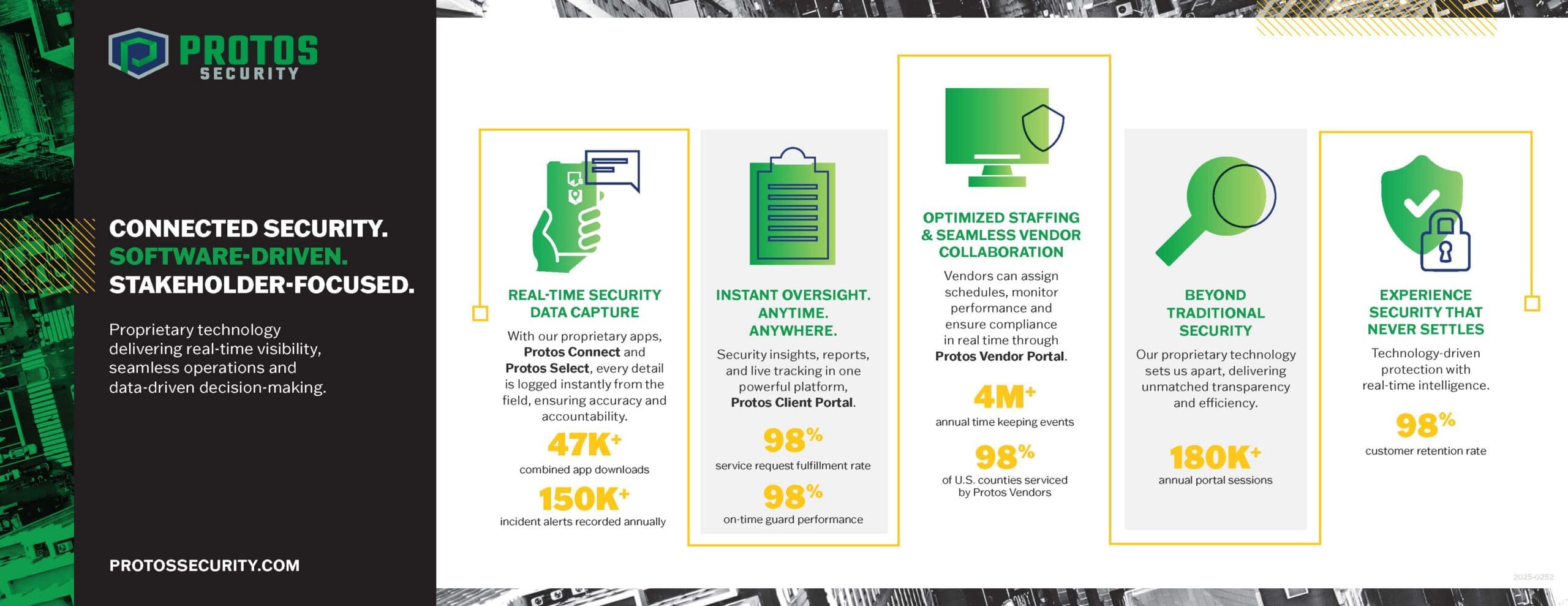 “It’s incredible to see how far Protos has come over the past two decades,” said Mark Hjelle, CEO of Protos. “What began as a vision to modernize security services has evolved into a nationwide, software-enabled platform built on accountability and strong local partnerships. As we look ahead, we remain committed to making security more transparent, more responsive and more aligned with our clients’ evolving operational needs.”