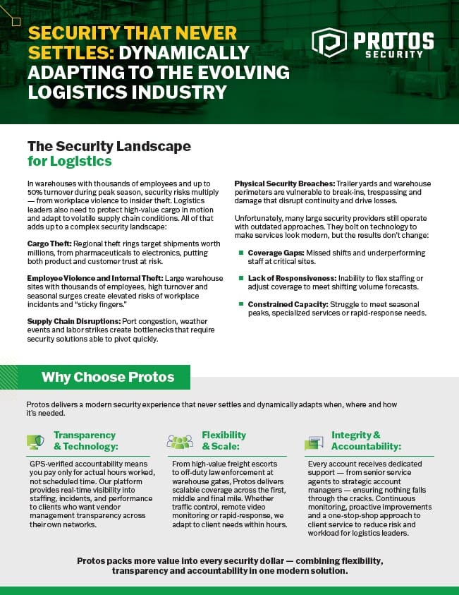 Protos offers specialized services to provide versatile security solutions that adapt to the dynamic nature of supply chain operations and mitigate high-stakes risks.